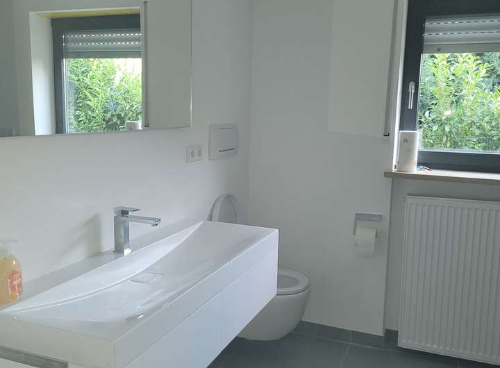 Bäder, Innentüren und neue Fussböden. .Im Aussenbereich ist ein Garten sowie eine Terrasse vorhanden. Zusätzlich ist eine Garage und PKW-Stellplätze vor dem Haus vorhanden. Die Miete beträgt 1.600€ + Nebenkosten.