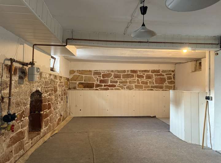 * einen tollen Kellerraum mit offenem Sandsteinmauerwerk - ein angemessener Ort für Feiern aller Art, aber auch Hobbyraum oder Spielzimmer für die Kids