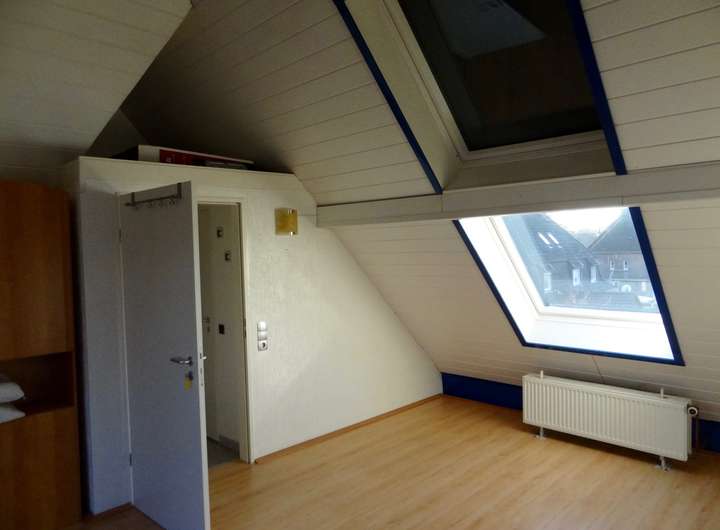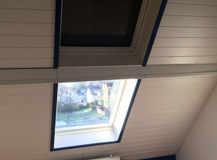 Der Dachboden ist komplett ausgebaut worden zu einem Studio mit drei großen Velux-Panoramafenstern.