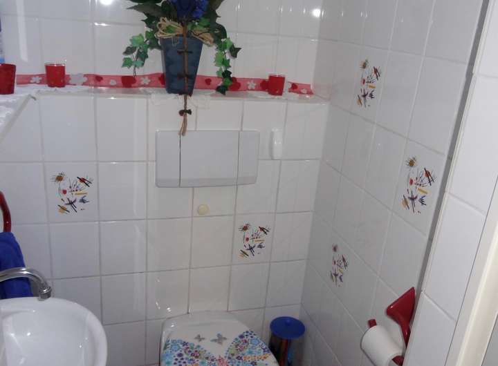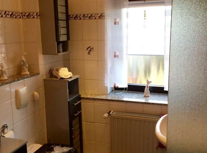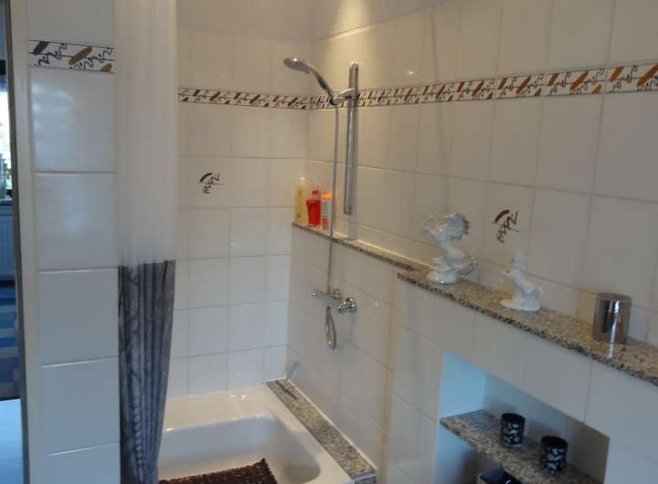 Im Haus befinden sich 2 Bäder (1. Etage mit Dusche und Dachstudio mit Badewanne) und ein Gäste-WC (Erdgeschoß).