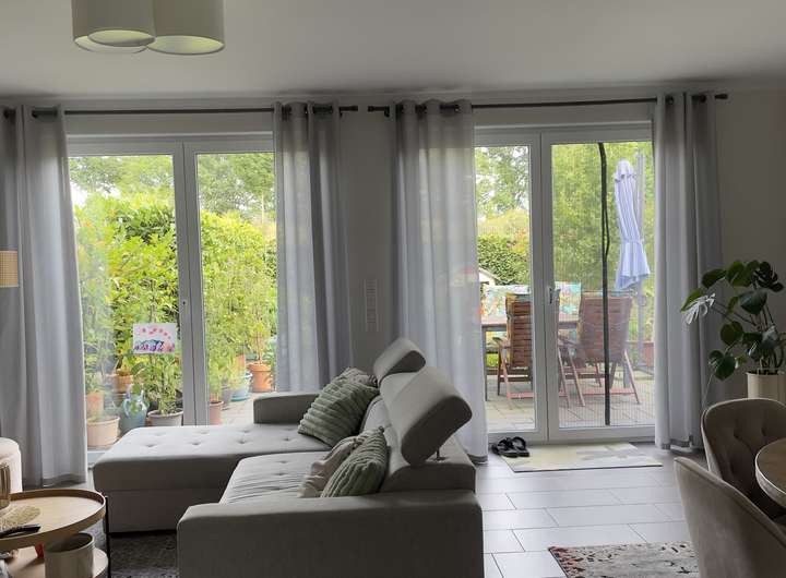 Unsere Doppelhaushälfte bietet den idealen Wohnraum für Sie und Ihre Familie. Das ca. 320 m² große Grundstück in Südwest-Ausrichtung bietet viel Licht und Sonne.