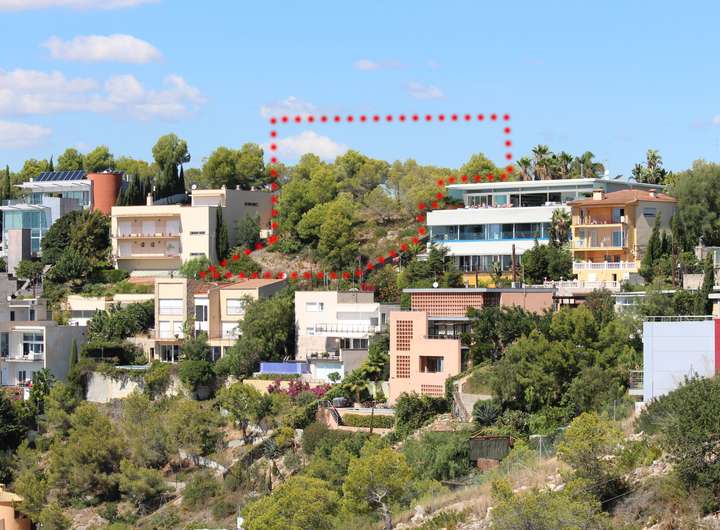 Esta es la última oportunidad para comprar un tal terreno en ésta exclusiva zona residencial con una hermosa vista panorámica sobre los tejados de Sitges. Al sur se ofrece una vista espectacular sin obstáculos sobre el mar, el puerto deportivo y la ciudad de Sitges. En el norte, las montañas del Parque Natural Garraf se abrieron. La parcela se encuentra en la fila superior de la zona residencial Levantina en un tranquilo callejón sin salida. Es notable que aquí arriba, incluso aunque en los días más calurosos del verano, siempre hay una ligera brisa que sopla, mientras que en la parte inferior de la ciudad el calor es agobiante.