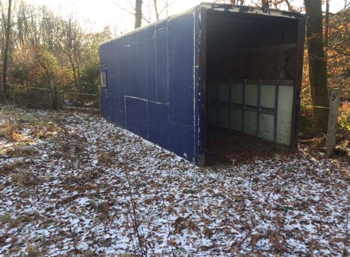Weide komplett eingezäunt mit Wasserstelle, Tränke und Unterstand.