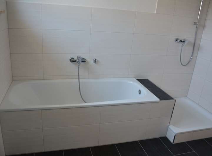 Von der Diele aus gelangen Sie zu Ihrer Linken in das Tageslichtbad, welches sowohl mit einer Dusche als auch mit einer Badewanne ausgestattet ist.