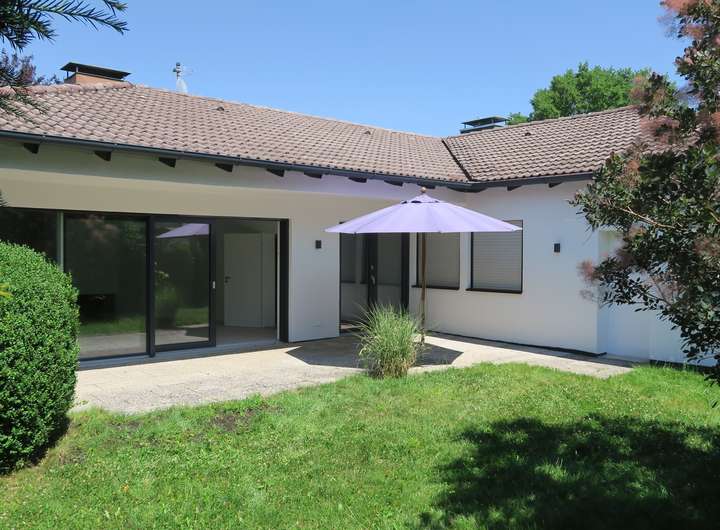 Der frei stehende, 2018 komplett kernsanierte Bungalow mit eingewachsenen Garten liegt in einer ruhigen Wohngegend in Deisenhofen.