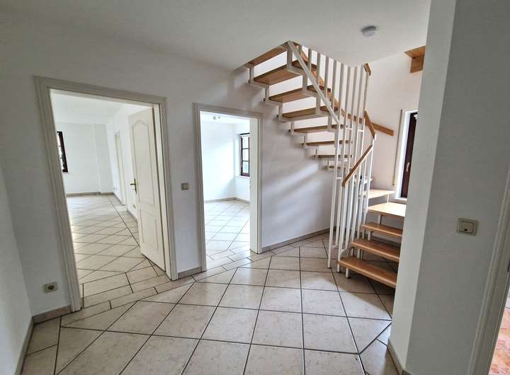 Das Einfamilienwohnhaus verfügt über 150 m² Wohnfläche, insgesamt 1 Wohn,- und Esszimmer, 5 Schlafzimmer, ein Badezimmer und ein Gäste-WC jeweils mit Tageslicht.