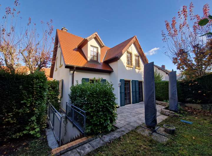 Freistehendes Einfamilienwohnhaus mit Südterrasse und schön angelegten und eingewachsenen Garten am Rande des Ortskerns von Harxheim.